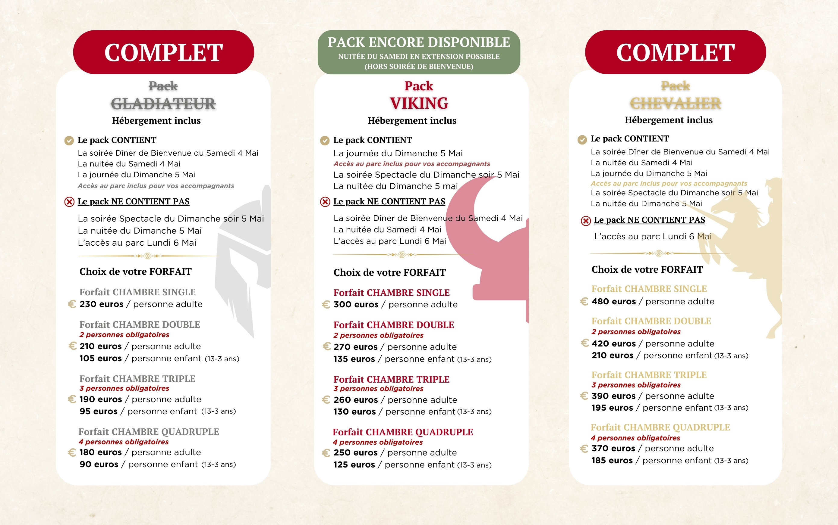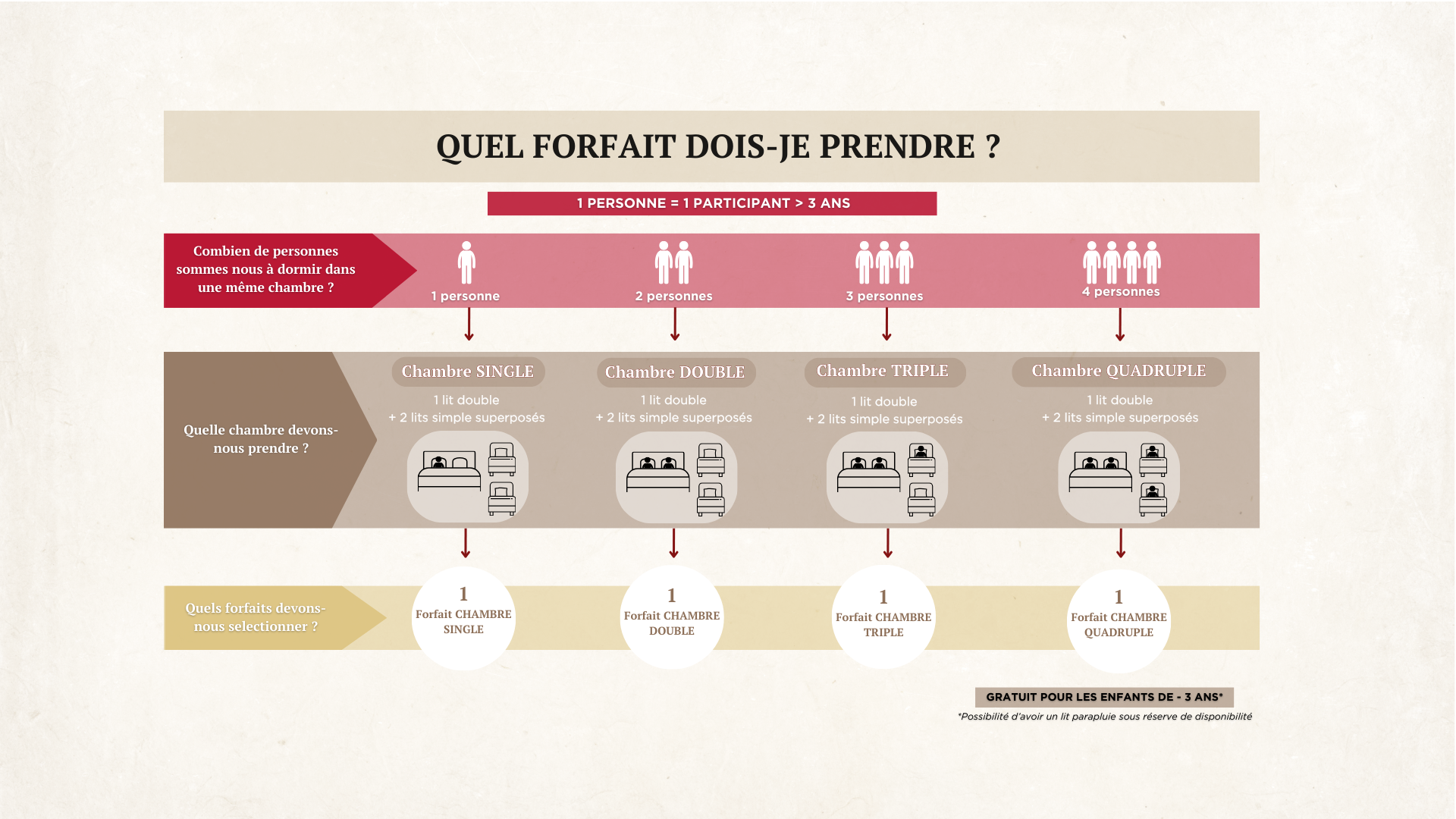 Attention, toute personne séjournant dans la même chambre que vous bénéficiera automatiquement du même pack.