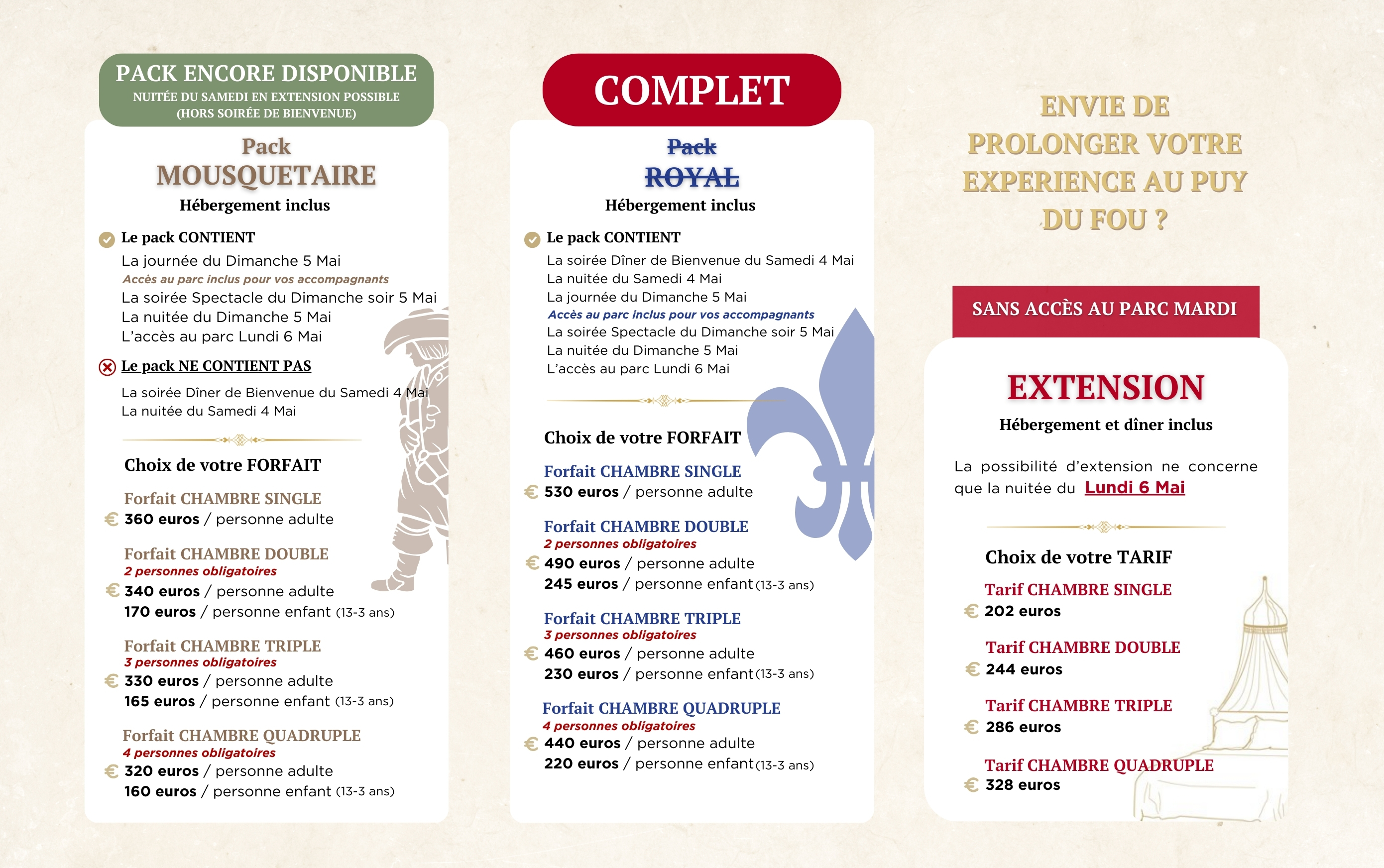 Vous souhaitez participer à la soirée de Gala ? Vous avez besoin d'assister uniquement aux réunions ? Vous voulez profiter du Parc sur la journée du lundi avec votre famille ?